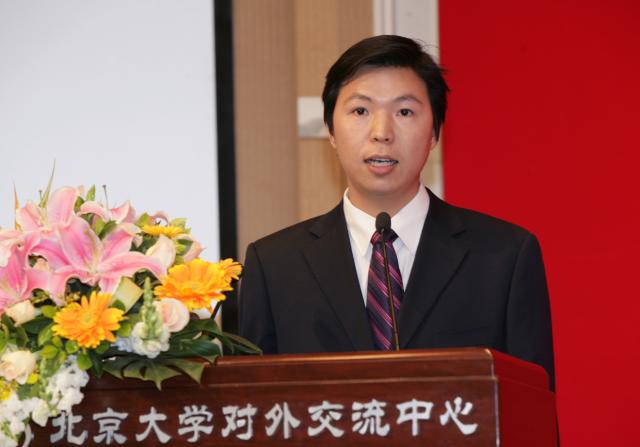 在校学生代表07级硕士研究生杨哲昊发言,表示一定会继承学长们优良的学风,扎扎实实提升自身素养,把自己塑造成一名优秀的北大毕业生,将来可以像师兄师姐一样为社会、为母校、为学院贡献自己的青春才华。