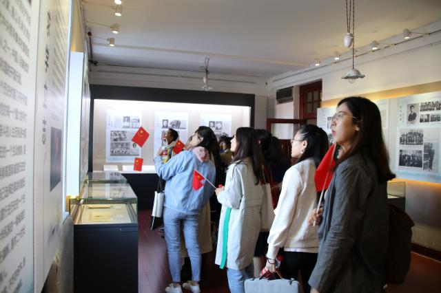 在北大红楼,同学们陆续参观了“五四现场”、“光辉起点”等专题展览。展厅通过图片、珍贵手稿等实物和影像的方式生动地再现了革命先贤发起新文化运动、五四运动,学习、研究和传播马克思主义的火热场景。在人物专题展览中,同学们近距离地感受了老一辈革命家为党和人民事业鞠躬尽瘁的感人历程。