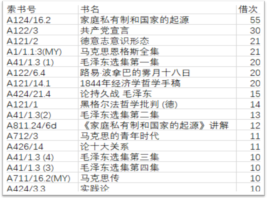 1.据统计,2018年借阅量最多的10本马克思主义类图书排行榜如下: