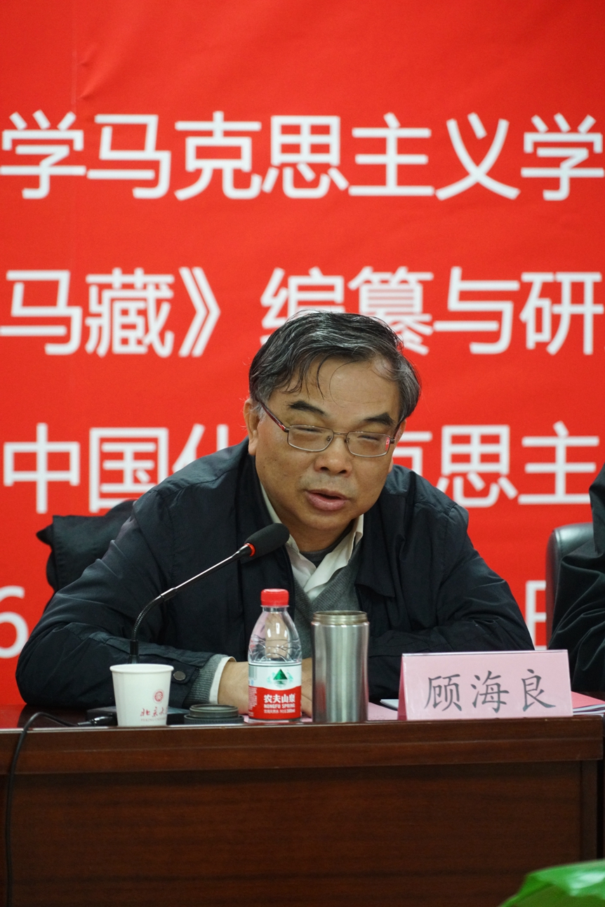 教育部高校思想政治理论课教学指导委员会主任、澳门电子pg游戏官网中国道路与中国化马克思主义协同创新中心主任、澳门电子pg游戏官网《马藏》编纂与研究中心主任顾海良教授在讲话中说,《马藏》编纂工程自2015年3月启动之后,产生的影响非常大,大家都认为这项学术文化工程应该做,而且现在是做 的时机,由北大来做是最合适的;澳门电子pg游戏官网图书馆馆藏资源丰富,资料非常珍贵,有很多“富矿”没有开采;学校领导、相关专家学者、国内各大图书馆、出版社对 这项工程都给予了非常慷慨的支持。自《马藏》工程启动至今,主要做了三件事,一是全力以赴搜集1917年之前马克思主义在中国传播的文献;二是参照《马克思恩格斯全集》历史考证版第二版(MEGA2)的编辑原则和体例,借鉴其它文献编纂的经验,制定《马藏》的编辑原则和体例等学术规范;三是《马藏》编纂与研究中心人员编注了《社会主义史大纲》、《社会主义神髓》、《共产党宣言序言》和《共产党宣言》四个样稿,供专家审读。按预期进度,将在2017年十月革命100周年之际出版1871年至1917年马克思主义传入中国的文献若干卷次。